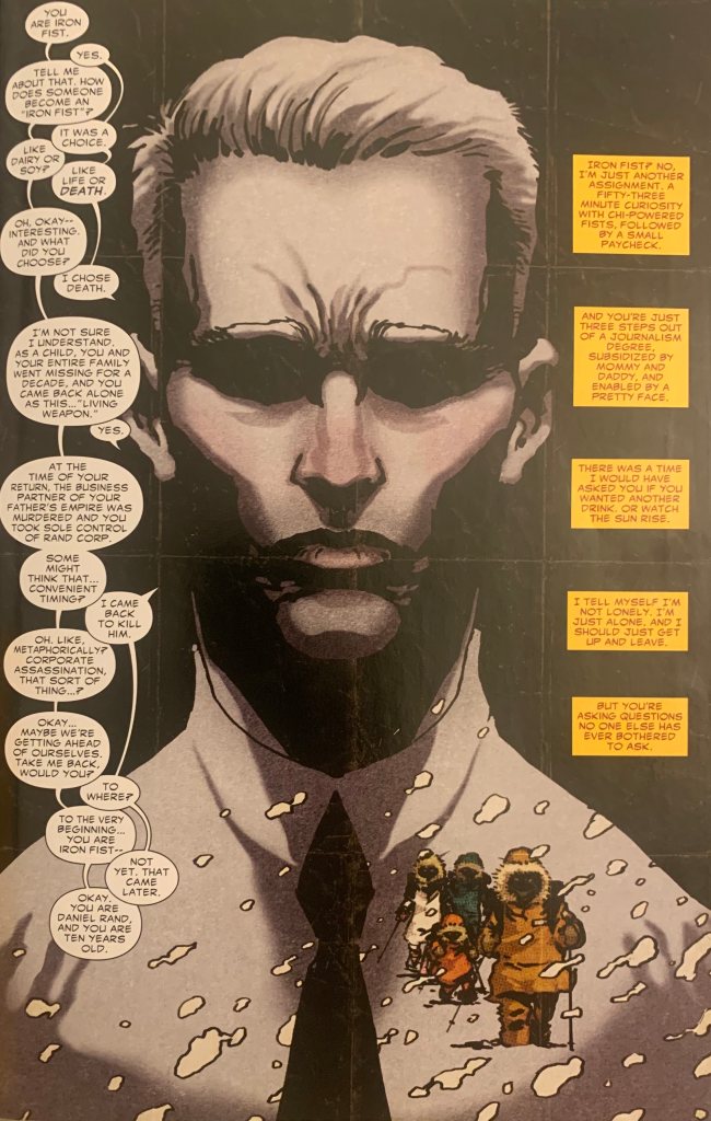 I am the living weapon. I am the blade that cuts both ways. I am the masochist and the narcissist. Rigid and fluid. Corrupt and pure. I am a White-Hot … Clenched Fist … Of Rage … And Iron. – Danny Rand, the Iron Fist – Issue 1 of Iron Fist: The Living Weapon (2014)